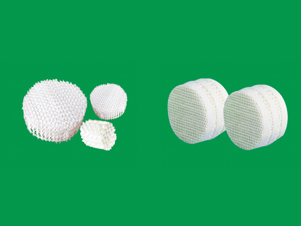 陶瓷規整填料與散堆填料相比具有效率高,降壓低,處理量大,持液量小,放大效應不明顯,操作彈性大等一系列優點。它由許多具有相同幾何形狀的填料單元體構成。陶瓷規整波紋